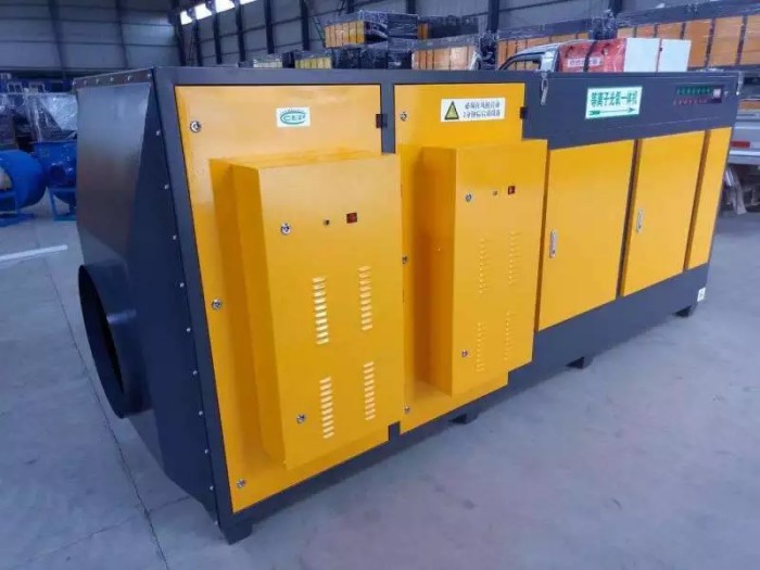 等離子光氧一體機是一種專門去除有毒有害氣體及惡臭氣體的一種裝置。光氧催化設備利用高能臭氧UV紫外線光束分解空氣中的氧分子產生游離氧,因游離氧所攜正負電子不平衡,所以需與氧分子結合,進而產生臭氧。臭氧對紫外線光束照射分解后的有機物具有不錯的氧化作用,對惡臭氣體及其它刺異味有良好的消除效果。利用UV光束裂解惡臭氣體中細菌的分子鍵,破壞細菌的核酸(DNA),再通過臭氧進行氧化反應,達到脫臭及消菌的目的。等離子光解一體機具有運行成本低、設備占地面積小,自重輕、無機械動作,無噪音等特點,凈化效率在95%以上。